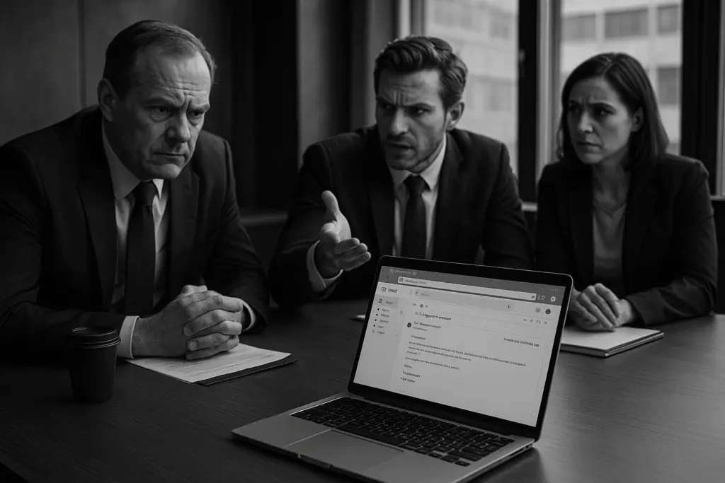 Pero tú, alma inocente y organizada, con tu carpeta de “Pruebas para cuando me echen” bien surtida, abres el portátil, pulsas un par de teclas y proyectas en la pantalla el correo con el presupuesto adjunto, enviado tres días antes de que el Director General lo “olvidara” convenientemente.